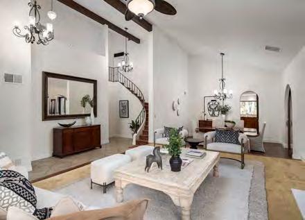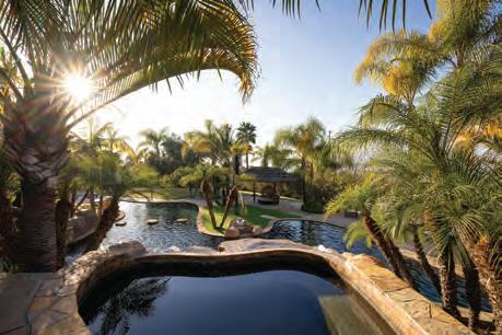 Set on a premier canyon-view lot overlooking The Crosby’s #1 fairway, this rare Lamour Lane residence blends elegance, privacy, and exclusivity within 24-hour guarded gates. Soaring ceilings, rich hardwood floors, and a designer-updated kitchen define the lightfilled interior. The expansive primary suite offers a spa-like bath with dual bathrooms— an exceptional luxury. A detached casita adds versatility, while the resort-style backyard features a covered patio, built-in BBQ, fire pit, and citrus trees. With owned solar and unmatched views, this is a rare opportunity in The Crosby.