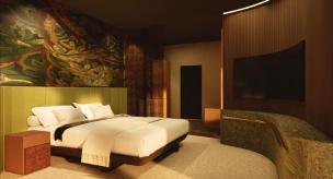 Three keywords for the vibe of Entangle Hotel are "Fearless, Majestic and graceful. Create a space through saturated colors and a combination of pattern on materials.