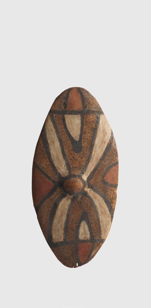The decoration of shields also conveyed individuality and belonging. Each design reflected local knowledge and cultural meaning, while sharing visual links with body painting, carving and other ceremonial arts. Through their designs and craftsmanship, shields served not only as protective tools but also as powerful expressions of cultural identity and spirituality.