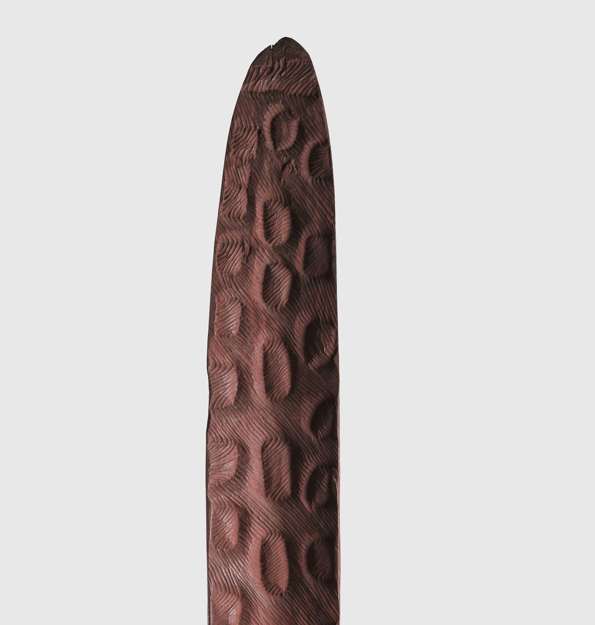 Making a shield required great skill and time. The process was highly valued, as the finished object carried both practical and symbolic importance. Shields were used in combat but also in ceremony and performance, expressing identity, strength and connection to ancestors. Their carved or painted surfaces could create optical effects in motion, enhancing the presence and agility of the warrior.