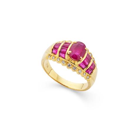The long abdomen set with graduated cushion-cut rubies, oval cabochon ruby thorax and circular cabochon ruby eyes, within hinged moveable wings inset with eight-cut diamonds, with blue and black enamel detail, French marks