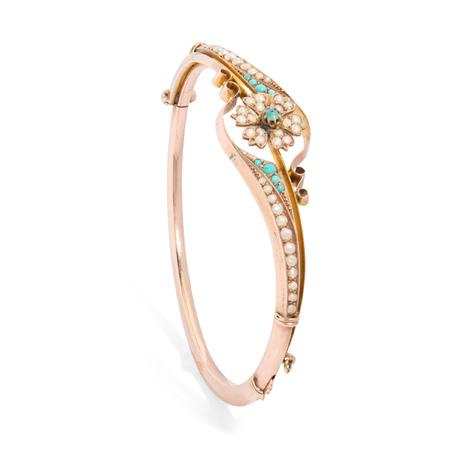A VICTORIAN TURQUOISE AND SEED PEARL BANGLE