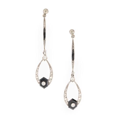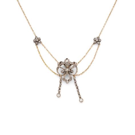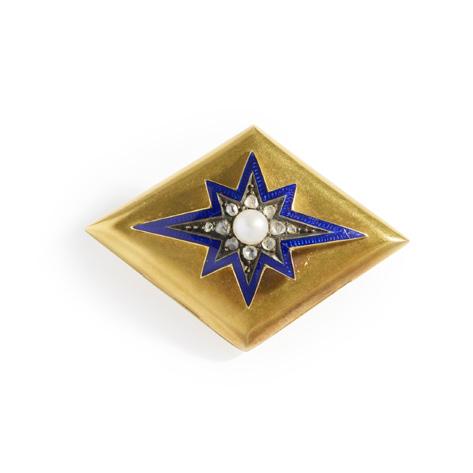 A BELLE EPOQUE DIAMOND AND ENAMEL PENDANT