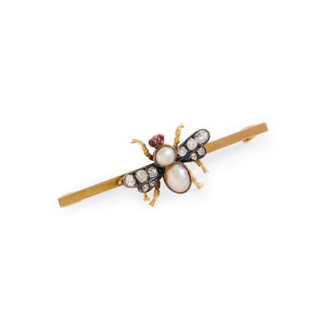 A PEARL AND DIAMOND INSECT BROOCH