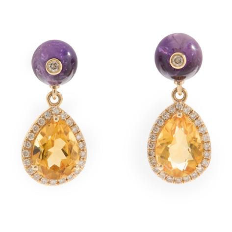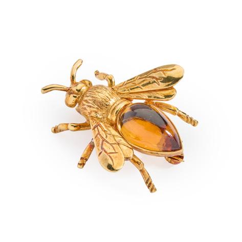 Modelled as a bee, the body set with a pear-shaped cabochon citrine, stamped 18K