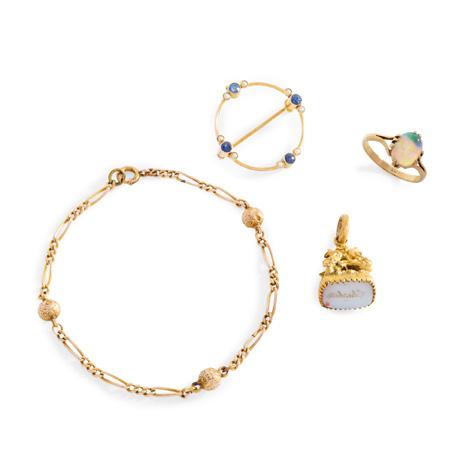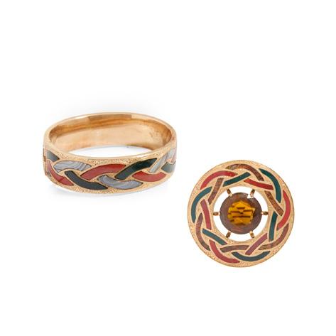 Of hinged design, the central square bloodstone intaglio with engraved initials, unmarked