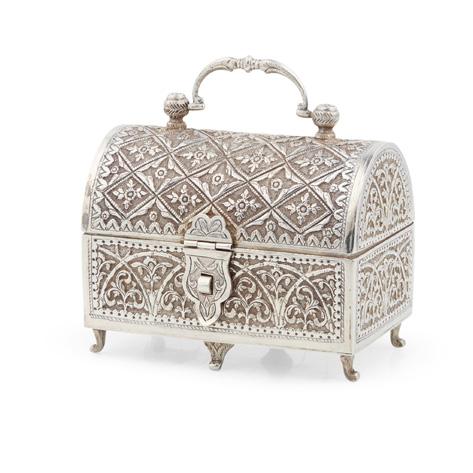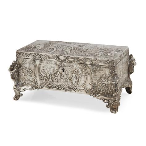 Of traditional form, floral and scroll decoration to a pull-off cover with similar detail