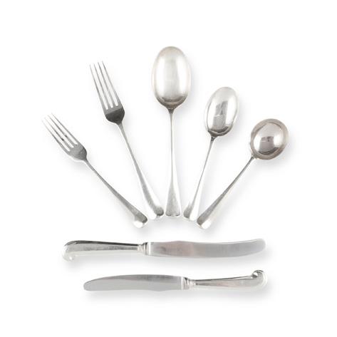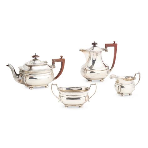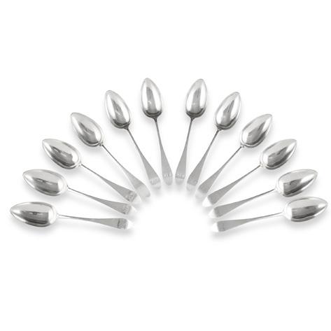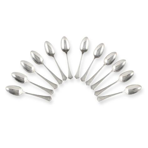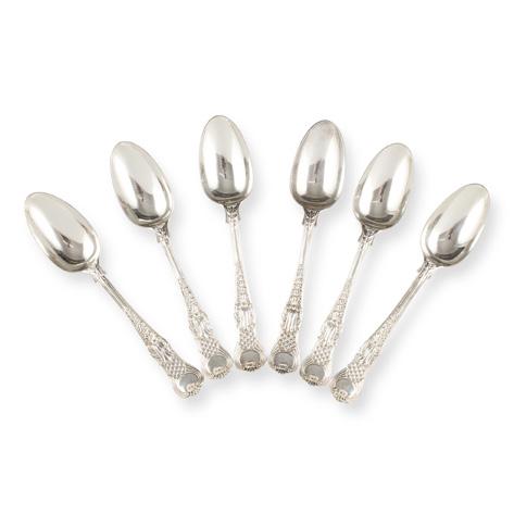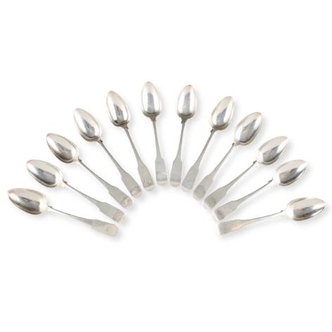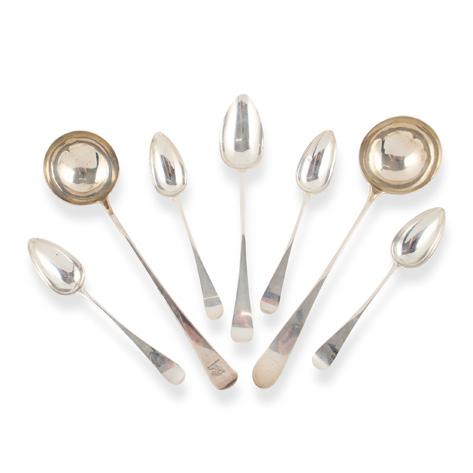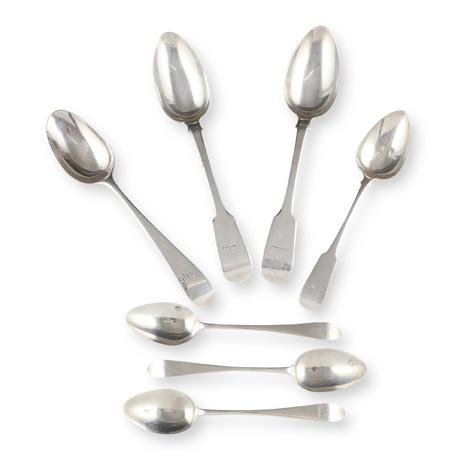 Comprising four tablespoons and four dessert spoons, all with swag border decoration and engraved monogram to terminal (8)