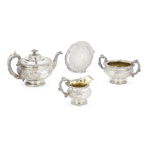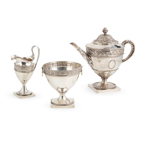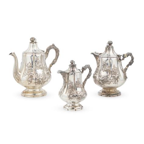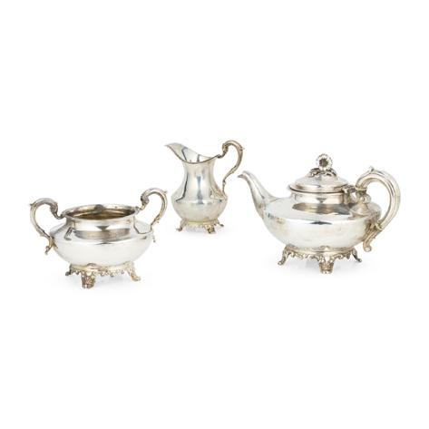 A MID 19TH CENTURY AMERICAN THREE PIECE TEA SERVICE