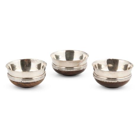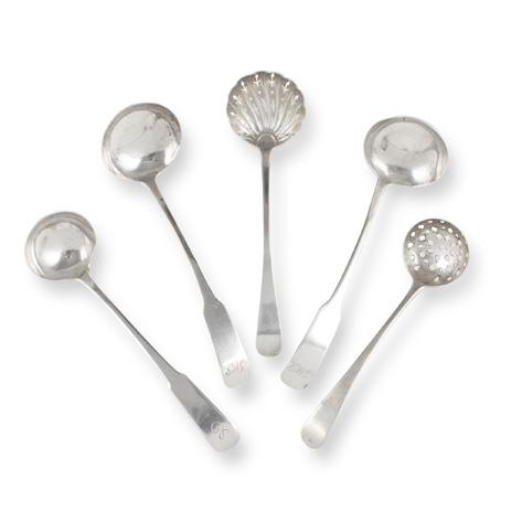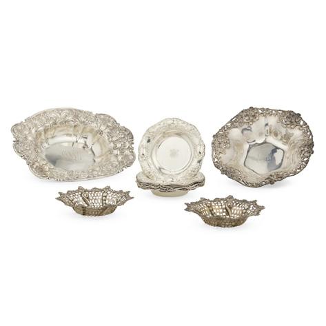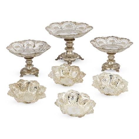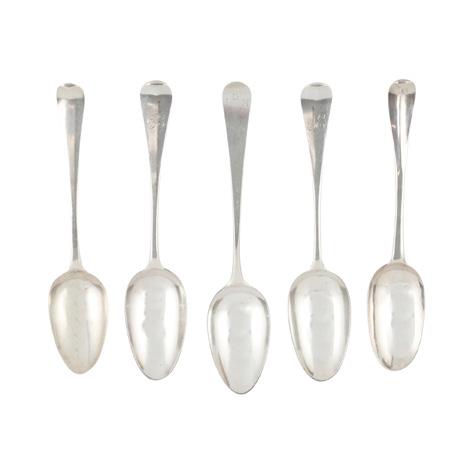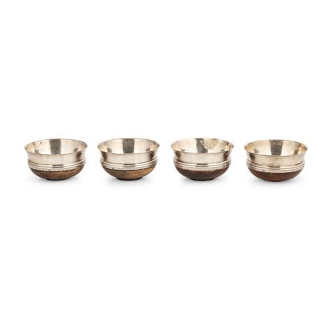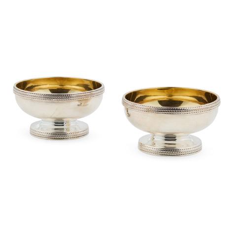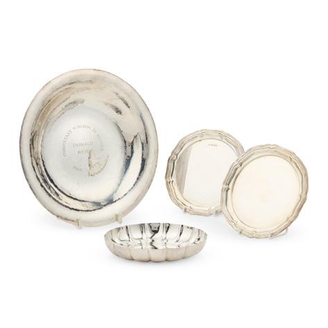 Each of circular outline, engraved scroll and foliate borders, the centre engraved with a coronet and monogram (5) 10cm (diameter of widest), 15.9oz (combined)