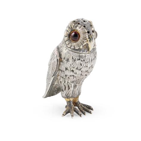 A 19TH CENTURY FRENCH PARCEL GILT NOVELTY OWL PEPPER