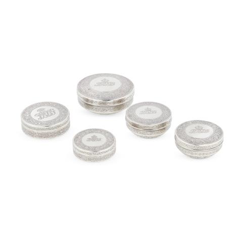 A MID 20TH CENTURY EGYPTIAN SET OF FIVE GRADUATED DRESSING TABLE BOXES