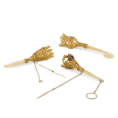 A PAIR OF FRENCH SILVER-GILT SEWING SCISSORS