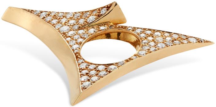 of abstract openwork geometric form, pavé set with eight-cut diamonds, London hallmarks to reverse and signed ‘GRIMA’ 4.2 cm. wide