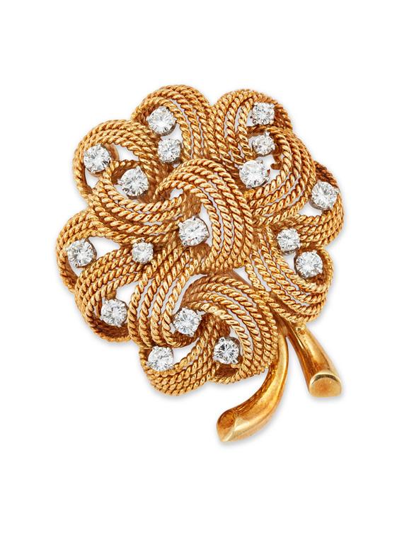 A GOLD AND DIAMOND-SET BROOCH, BY