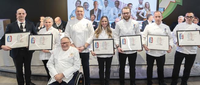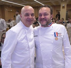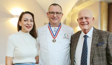 Le président a ensuite levé le voile sur les temps forts à venir, à commencer par un événement très attendu : les 90 ans des Toques Blanches Lyonnaises, célébrés le 5 juillet 2026 au Cirque Imagine, devant 450 invités. « Ce sera une grande fête, festive et libératrice. Le thème sera la prohibition. 1936, tout était interdit. 2026, tout sera autorisé », a-t-il lancé sous les applaudissements. Ce dernier a également évoqué les prochaines échéances majeures, avec un Sirha 2027 déjà en préparation. « Quand la France rayonne, nous rayonnons. Et quand Lyon rayonne, la gastronomie mondiale regarde vers nous », a-t-il résumé. L’assemblée générale a également été marquée par l’intronisation de 24 nouveaux membres, dont Jérôme Bocuse. Ce fut également l’occasion de mettre en lumière la vitalité de l’association, avec des partenariats en hausse de 20% en 2025, avec 99% des contrats renouvelés sur trois ans. Cinq nouveaux partenaires ont d’ailleurs rejoint l’aventure : Ligne Vauzelle, Boissieux Truffes, Vedrenne, Alliance des Énergies et Fiducial Pointex. La matinée s’est conclue par l’attribution du Prix de l’Espoir à Owen Barranco (Mirazur), Maxime Payet (La Cantine du Village) et Yaroslav Ruzhylo (La Mère Brazier) incarnant cette nouvelle génération que les Toques Blanches Lyonnaises s’attachent à accompagner et à valoriser.