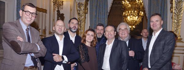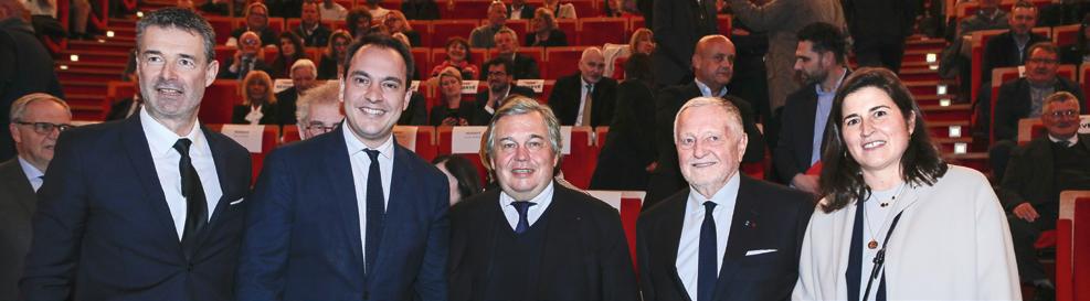 Franck Morize, président de la CPME du Rhône, Pierre Olivier, maire de Lyon 2, Olivier Ginon, président-fondateur de GL events, Jean-Michel Aulas, candidat à la mairie de Lyon et Béatrice de Montille, conseillère municipale