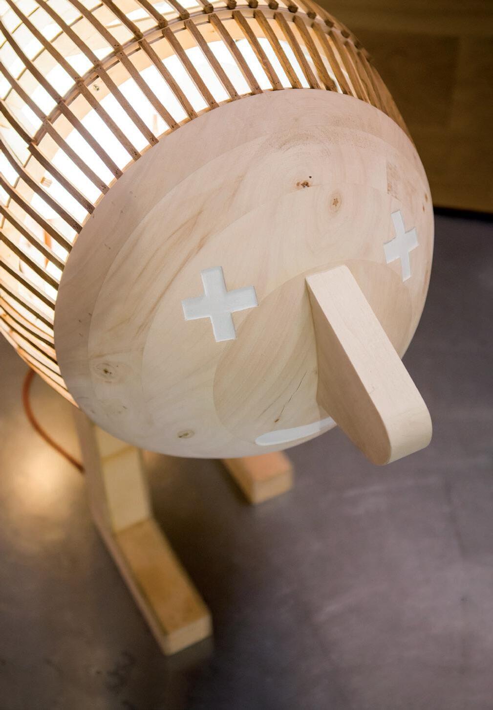 To bring SmellyFant to life, LZF once again collaborated with master artisan Manolo Martín. The sculpture’s three interlocking spheres form the body and head. At the same time, a luminous heart glows from within, diffused through a lining of natural wood veneer, turning SmellyFant into a glowing ambassador of fun and fantasy.