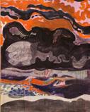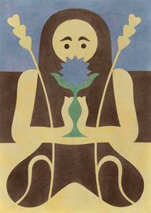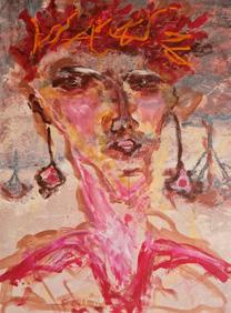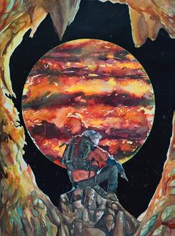 Stephan Mundi, „Erdgeboren“, 2024, Acryl auf Strukturpapier, 64 x 50 cm, zu sehen in der Kunstgalerie im Kulturzentrum Waitzinger Keller in Miesbach, 22.5.-19.6.26
