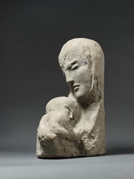 Wilhelm Lehmbruck, „Mutter und Kind“, 1918, Steinguss, 53,2 x 38 x 18 cm, Kulturstiftung Sachsen-Anhalt, Kunstmuseum Moritzburg Halle (Saale), Foto: Punctum/ Bertram Kober