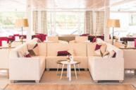 Das Licht am Douro strahlt durch die riesigen Panoramafenster. Die warmen Hölzer, die frischen Farben des Interieurs und die familiäre Atmosphäre schaffen Wohlgefühl an Bord. Die Kabinen verfügen über 2 getrennte Betten, die nach Bedarf zusammengestellt werden können. Dusche/WC, Föhn, TV, Safe, mit 2 kleineren Fenstern auf dem Hauptdeck und frz. Balkon auf Mittel- und Oberdeck. Rezeption, Lounge, Bar, Restaurant.