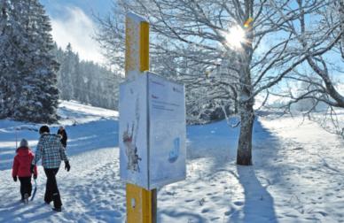 Dans la région Jura & TroisLacs, on aime les chasses au trésor! Pas de lanterne ici, mais une façon ludique de partir à la rencontre des paysages hivernaux. Sept lieux, de SainteCroix (VD) à Montfaucon (JU), en passant par La Brévine (NE), La Tourne (NE), Chevroux (VD), Bienne (BE) et MontCrosin (BE), organisent ainsi des sentiers de Sioux avec indices et jeux de piste. Si l’on résout l’énigme (un mot à trouver), on a droit à une fondue au chocolat! Les parcours sont de durée variable, entre 45 et 120 minutes, et peuvent être faits à pied ou en raquettes, en fonction de l’enneigement.