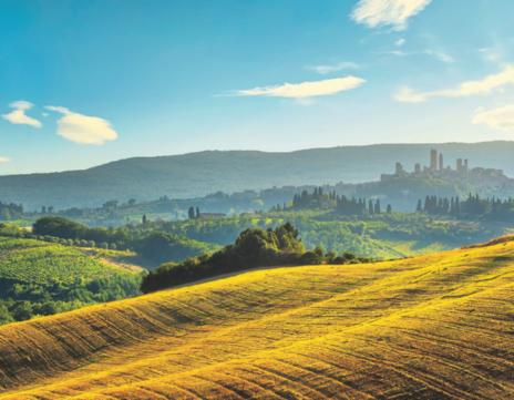 Aujourd’hui, notre tour à vélo électrique débute dans la ville pittoresque de Tavarnelle. Cyprès, vignobles, maisons de campagne, châteaux et villages médiévaux jalonnent le chemin jusqu’à San Gimignano, où nous flânons dans le centre historique et nous arrêtons chez le meilleur glacier d’Italie, la Gelateria Dondoli – un pur régal! Puis retour à l’hôtel en car.