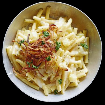 gerösteten Zwiebeln, Zwiebelgrün und gemahlenem Pfeffer bestreut servieren. Ca. Fr. 8.60 für 4 Personen. Rezept auf migusto.ch