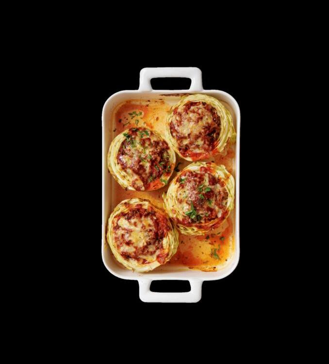 2 Weisskohle à 900 g durch den Strunk halbieren. Mit einem Kugelausstecher aushöhlen, sodass noch ein Rand von ca. 2 cm übrig bleibt. Die Hälfte des herausgeschnittenen Kohls fein hacken. Rest anderweitig verwenden – zum Beispiel für einen Salat. 1 grosse Zwiebel hacken. Backofen auf 200 °C Unter-/Oberhitze vorheizen. 1 EL Öl in einer Bratpfanne erhitzen. 600 g Rindshackfleisch darin scharf anbraten. Zwiebel sowie gehackten Kohl dazugeben und mitbraten. Mit Salz und Pfeffer würzen. Kohlhälften in eine Gratinform legen und mit der Masse füllen. In der gleichen Bratpfanne 100 g Tomatenpüree mit 1,5 dl Wasser aufkochen. Mit Salz und Pfeffer würzen. Sauce über die Kohlhälften giessen. 100 g Appenzellerkäse darüberreiben. In der unteren Ofenhälfte 30–35 Minuten gratinieren.