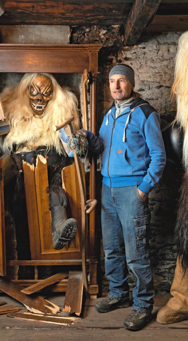 1 Meine Ausstellung «Ich habe in der blauen Stube eine Dauerausstellung zur Tschäggättä eingerichtet, um unser Brauchtum für Besucher greifbarer zu machen. Ich war mit den Kostümen auch schon in London, Bangkok, Lissabon und Berlin. Mein grosser Traum: eine Ausstellung in Paris.»