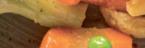 1 Bund Frühlingszwiebeln hacken, wenig Grün zum Anrichten beiseitestellen. 500 g verschiedenfarbige Peperoni entkernen, in 2 cm grosse Würfel schneiden.
