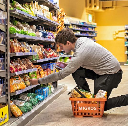 Près de 70% des aliments vendus dans un magasin Migros proviennent de Suisse. La part de produits indigènes est particulièrement élevée pour la viande de porc avec près de 100%, les produits laitiers (99%) et les œufs (93%).