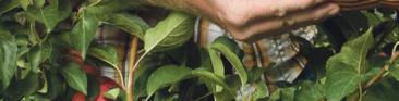 Préchauffer le four à 200 °C, chaleur de sole et de voûte. Couper 3 poires en deux dans la longueur, retirer le cœur et la tige à l’aide d’une cuillère parisienne. Peler les moitiés de poires en laissant des bandes de peau pour former un motif rayé. Presser les faces coupées des poires dans env. 8 cs de sucre de canne et les déposer sur 1 abaisse rectangulaire de pâte feuilletée de 320 g. Découper la pâte tout autour avec un couteau en laissant un petit bord. Découper également une tige et deux feuilles. Disposer les feuilletés aux poires sur une plaque chemisée de papier sulfurisé en les espaçant légèrement. Cuire 15-20 min au milieu du four. Si les feuilles brunissent trop rapidement, les recouvrir d’une feuille d’aluminium. Retirer et saupoudrer de sucre glace. Servir tiède ou froid.