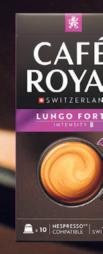 Toutes les capsules Café Royal, y compris CoffeeB p. ex. lungo, 10 capsules, 3.38 au lieu de 4.50, (100 g = 6.38) à partir de 2 articles 25%