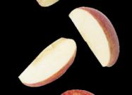 800 g Raclette-Kartoffeln in etwas Wasser ca. 20 Minuten knapp weich kochen. Kartoffeln in ca. 5 mm dicke Scheiben schneiden. 2 Äpfel, z. B. Gala, halbieren, entkernen und ungeschält in Schnitze schneiden.