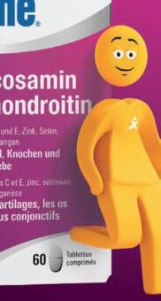 Contient 600 mg de glucosamine et 500 mg de sulfate de chondroïtine par dose journalière.