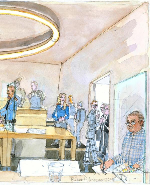 Als Gerichtszeichner porträtiert Robert Honegger Angeklagte und Szenen von Strafprozessen