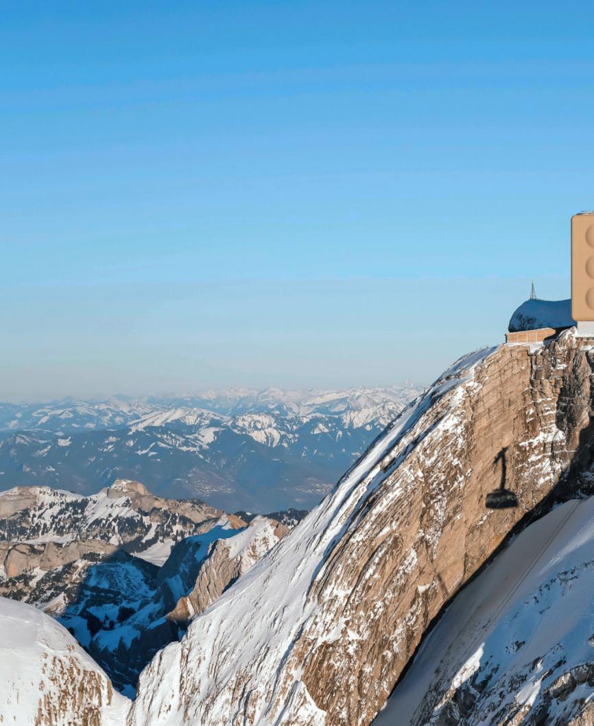 Migros-Moment auf dem Säntis Seit Anfang Februar fährt eine neu gestaltete Gondel auf den höchsten Berg im Alpstein. Die Migros Ostschweiz feiert mit der Kabine im Design des Labels «Aus der Region. Für die Region.» den 20. Geburtstag ihres beliebten regionalen Angebots. Die Aufnahme ist am 15. Februar entstanden.