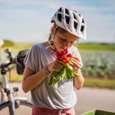 Tailler une botte de radis roses en fines allumettes et émincer 30 g de tomates cerises semi-séchées. Les mélanger tous les deux à 100 g de fromage frais, saler et poivrer. Dresser la tartinade selon les goûts sur du pain, du pain croustillant ou des biscuits apéritifs avec 20 g de roquette. La recette se trouve sur migusto.migros.ch