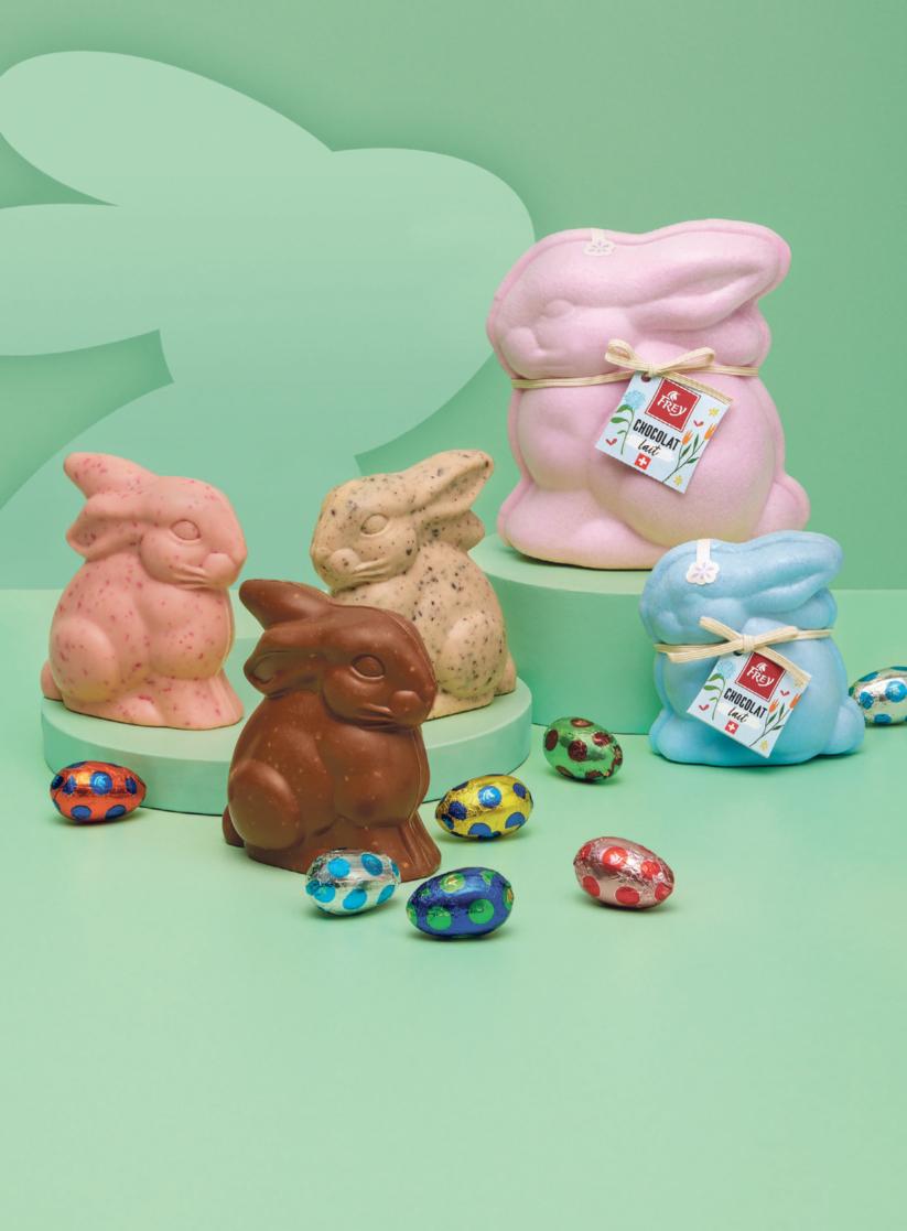 Lapin en chocolat au lait Bunny Frey rose, vert clair ou bleu clair, 170 g, (100 g = 3.94)