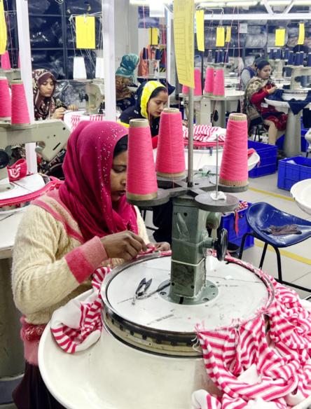 Textilfabrik in Tiruppur: Näherinnen produzieren hier Pyjamas und Unterwäsche für die Migros.