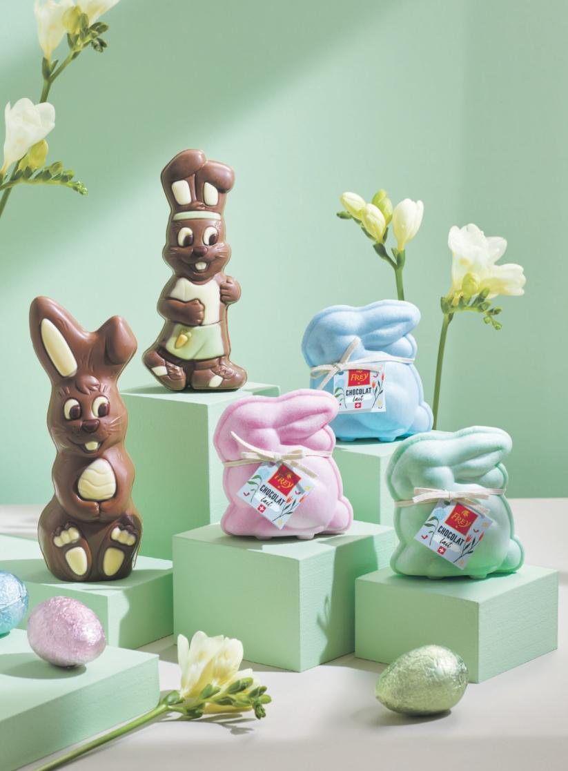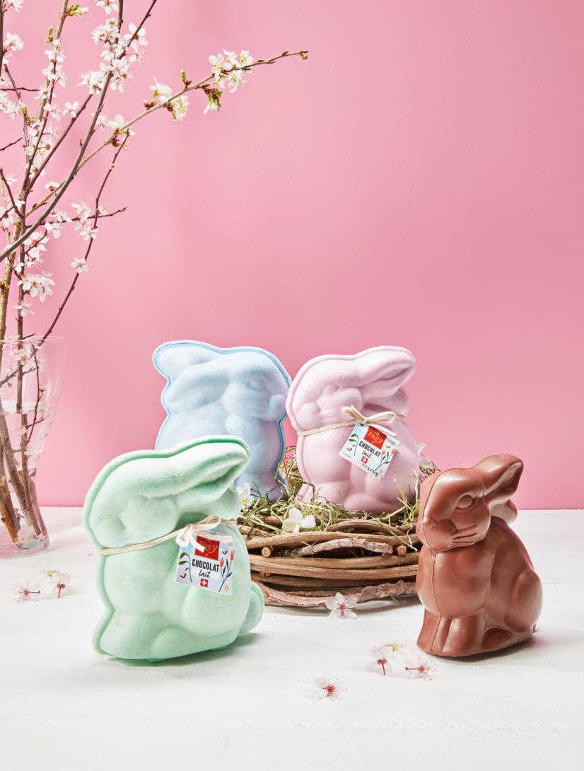 2.90 Lapin en chocolat au lait Bunny Frey bleu, rose ou vert, 55 g