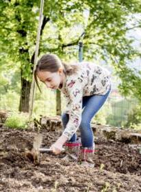 Den Boden auflockern und Kompost einarbeiten: Das wärmt die Erde für die ersten Samen zusätzlich auf – und macht auch den Kleinen Spass.
