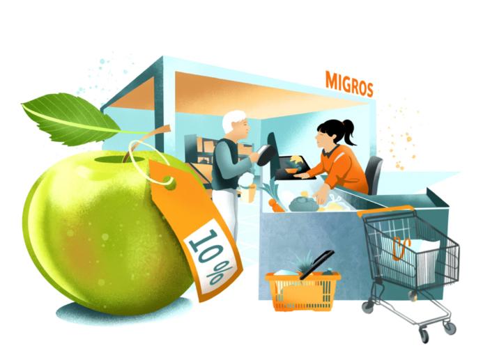 Un proverbe anglais dit qu’une pomme par jour éloigne le médecin pour toujours. Personnellement, j’essaie de manger chaque jour les cinq portions recommandées de fruits et de légumes. Cela dit, ce n’est pas de moi que je veux vous parler aujourd’hui, mais de Marco, l’un de mes collaborateurs. La semaine dernière, il a accueilli nos clients à l’entrée du magasin en leur offrant une pomme et un bon de réduction de 10% sur les fruits et les légumes frais. Marco a récemment pris en charge le rayon «Fraîcheur», et cette initiative lui a permis de se présenter de manière conviviale à la clientèle. Pour Marco, tout roule en ce moment, mais ses débuts dans le monde professionnel n’ont pas été simples. Il y a huit ans, il a interrompu son apprentissage chez un autre détaillant. En 2021, il a commencé à travailler chez nous, dans le rayon fruits et légumes, et dès le premier jour, il s’est montré assidu et fiable. Grâce à ses cinq années d’expérience professionnelle et au soutien de Migros, il peut désormais suivre une formation en cours d’emploi pour obtenir son diplôme de spécialiste du commerce de détail. En tant que responsable, j’essaie toujours de motiver mes collaborateurs à se perfectionner. Dans le commerce de détail, il est possible de faire carrière si l’on s’investit. Moi-même, je suis devenu gérant de magasin à l’âge de 24 ans. Ce qui rend notre