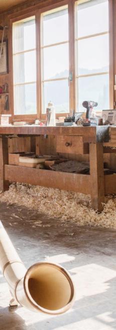 32 Hartes Holz, weiche Töne Zu Besuch bei Familie Bachmann, die im Emmental seit 100 Jahren Alphörner baut