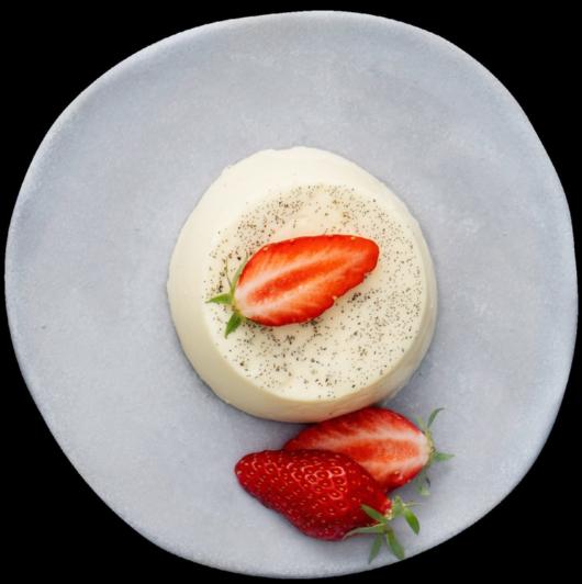 Faire tremper 4 feuilles de gélatine dans une grande quantité d’eau froide. Fendre 1 gousse de vanille et en gratter les graines. Amener 4 dl de crème à ébullition avec 70 g de sucre, les graines et la gousse de vanille. Retirer la casserole du feu et enlever la gousse de vanille. Bien essorer la gélatine et la faire fondre dans la crème en remuant. Rincer 4 moules d’env. 1,8 dl sous l’eau froide et les remplir de crème. Couvrir d’un film alimentaire et laisser se raffermir env. 4 h au réfrigérateur. Démouler la panna cotta sur des assiettes.