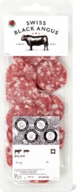 Migros propose désormais de la charcuterie Swiss Black Angus, dont du salami et de la viande séchée. Les veaux sont élevés en compagnie des vaches allaitantes et sont nourris avec du foin et de l’herbe, le tout dans le respect des directives IP-Suisse.