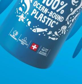 Limited Edition. Bouteille composée de granulés innovants, faits de déchets plastiques collectés sur les plages et les côtes.