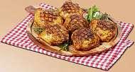 Préparation: Préchaufferlefour à200 °C.Badigeonner les moules d’un peud’huile.Retirer lestomates du bocal, leségoutterpuisles hacher.Exprimerlejus du citron. Le mélanger avecles tomatesetlerestant d’huile. Saler et poivrer Émincer lesoignons nouveaux. Lespétriravec la viande hachée, la chapelure,l’œuf,lesel et le piment concassé.Répartirlapréparation dans lesmoules.Glisser au milieu du four et cuireenv.20min.Mélangerlaroquetteavec la sauce. Démouler lespetitsrôtis de viande hachée et servir aveclasalade