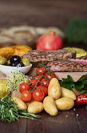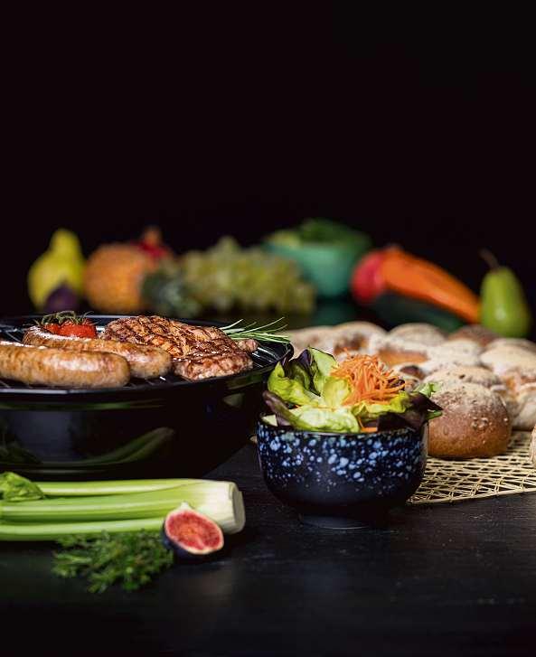 Ingrédients: 8csd’huile d’olive, 12 tomates cerisessemi-séchées àl’huile, 1citron, sel, poivre, 2oignonsnouveaux, 600gdeviande hachéedebœuf, 3csdechapelure,1œuf,1ccdesel,1ccdepimentséché concassé, 2bouquettesderoquette